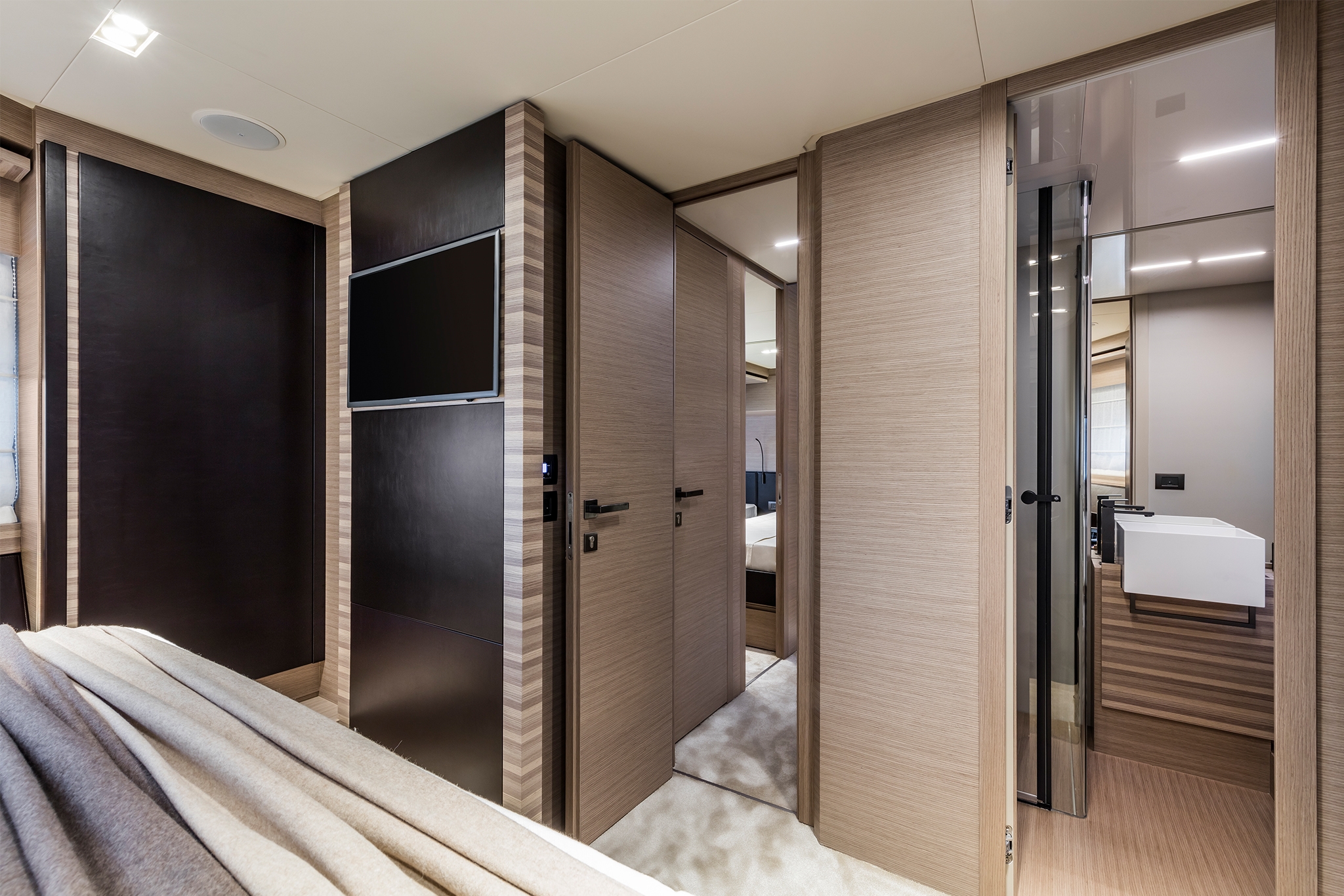 In un mix di indipendenza e convivenza, l’evoluzione del design si apre ad un’eccellente progettazione di spazi e volumi, uniti dall’inconfondibile stile Ferretti Yachts.