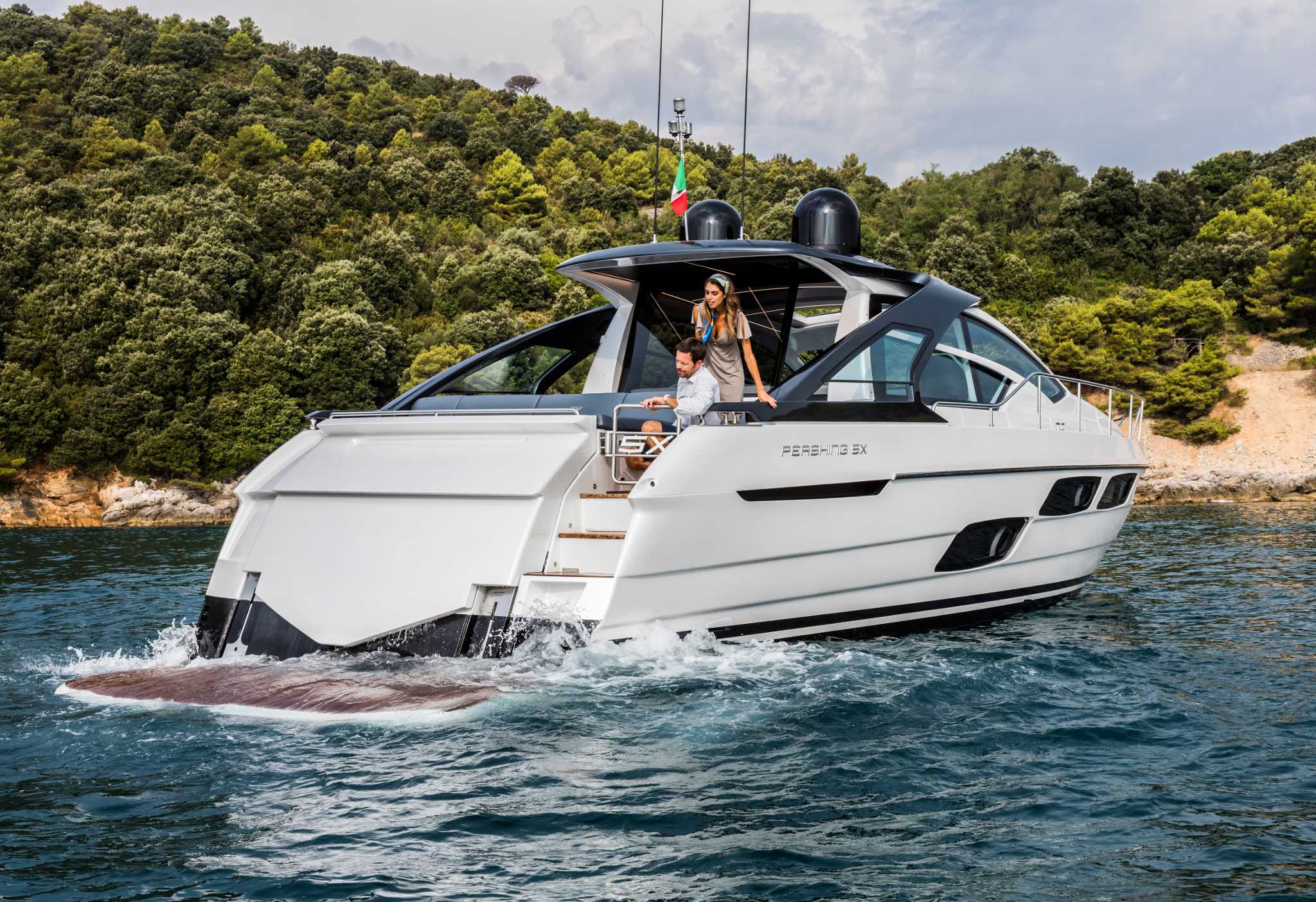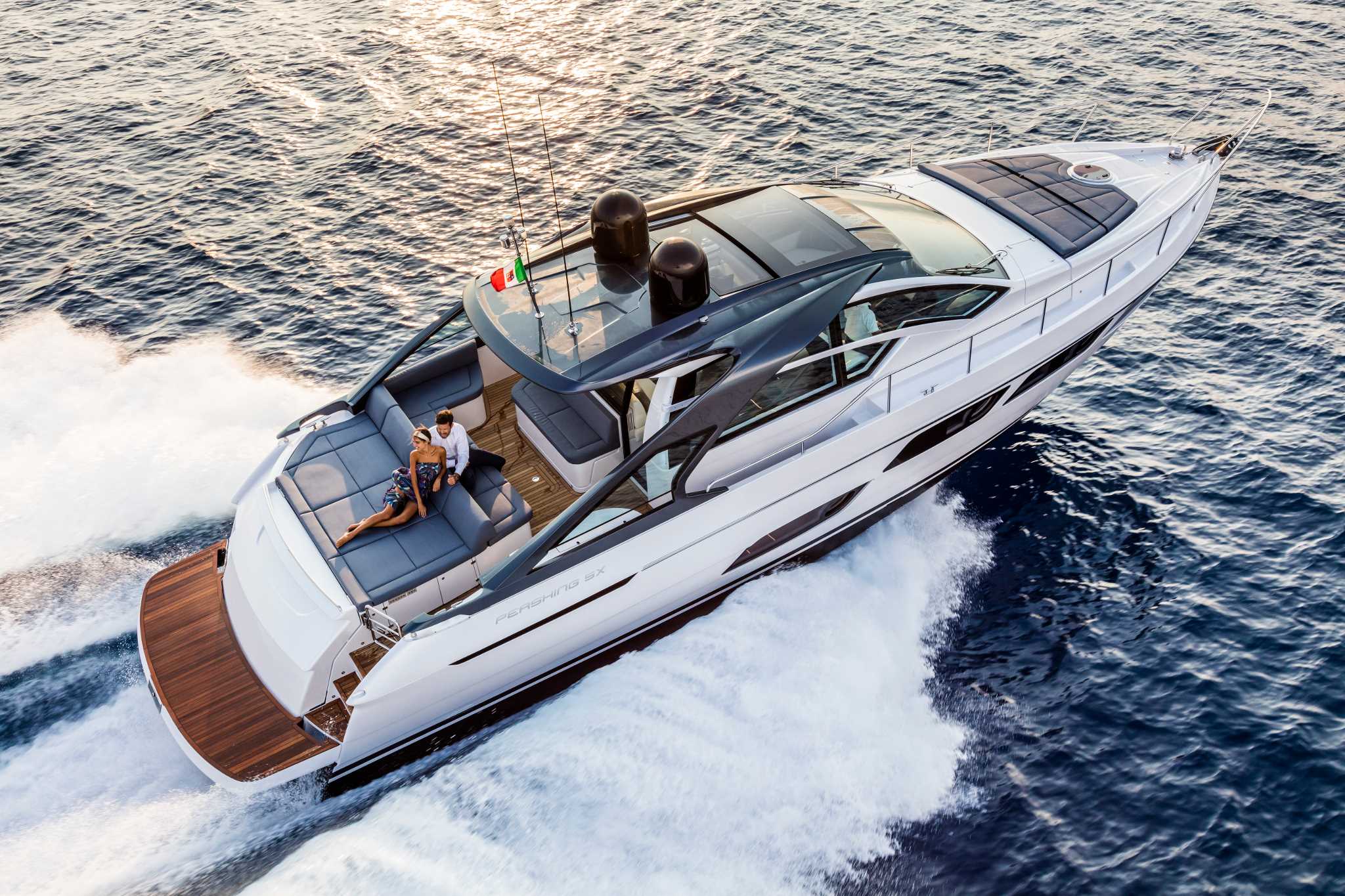Pershing 5X evoca la spinta inesauribile a solcare nuovi orizzonti a grande velocità.